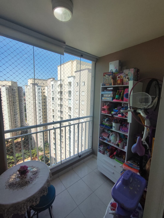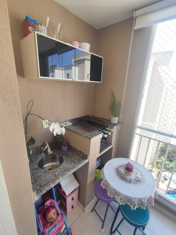 A varanda gourmet, com fechamento em vidro, cortina de sol, bancada e armários, oferece o cenário perfeito para relaxar, receber amigos e aproveitar a vista.