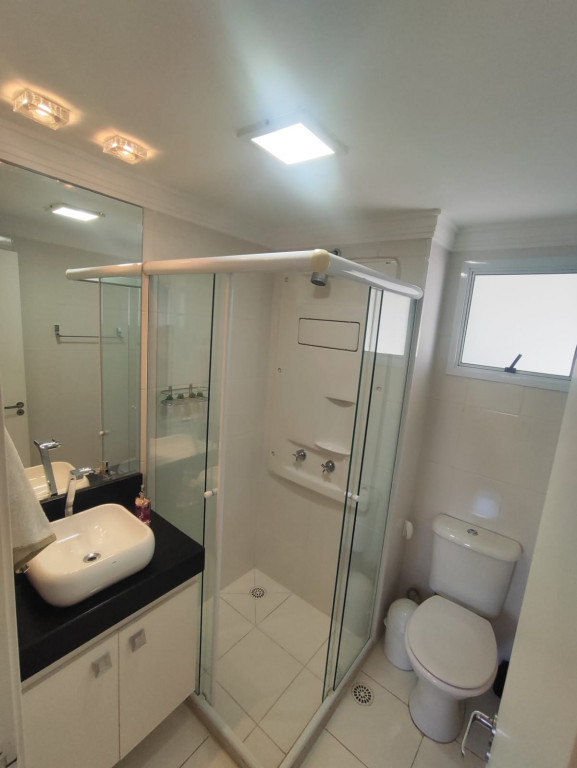 Os dormitórios possuem armários de alto padrão, com excelente aproveitamento de espaço e acabamento refinado. Os banheiros seguem o mesmo padrão de qualidade, com gabinetes planejados, espelhos, box em vidro e bancadas em granito São Gabriel.