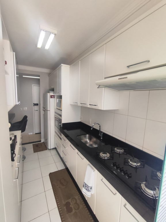 Na cozinha, o projeto Italínea traduz bom gosto e funcionalidade, com cooktop, forno elétrico embutido, depurador, geladeira e micro-ondas já instalados. A área de serviço, equipada com máquina de lavar e armário planejado, reforça o conceito de praticidade absoluta.